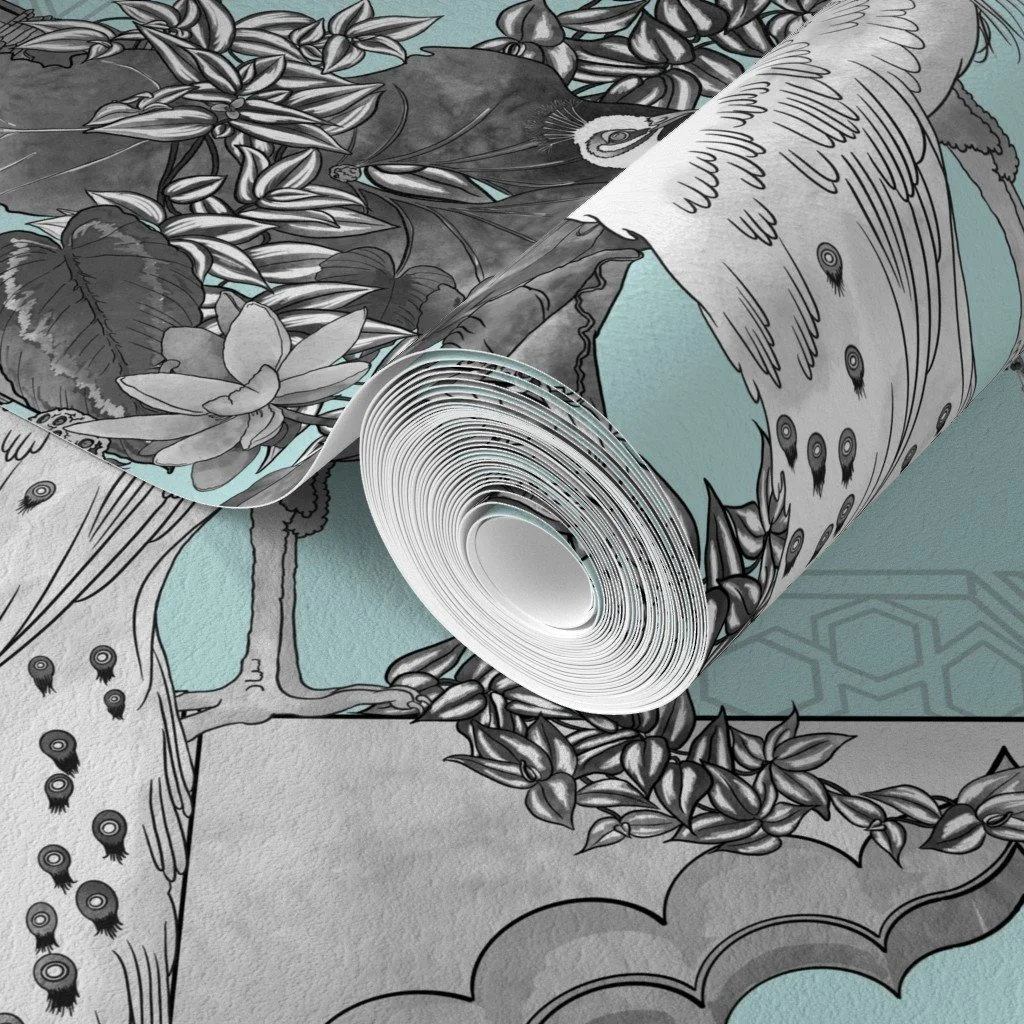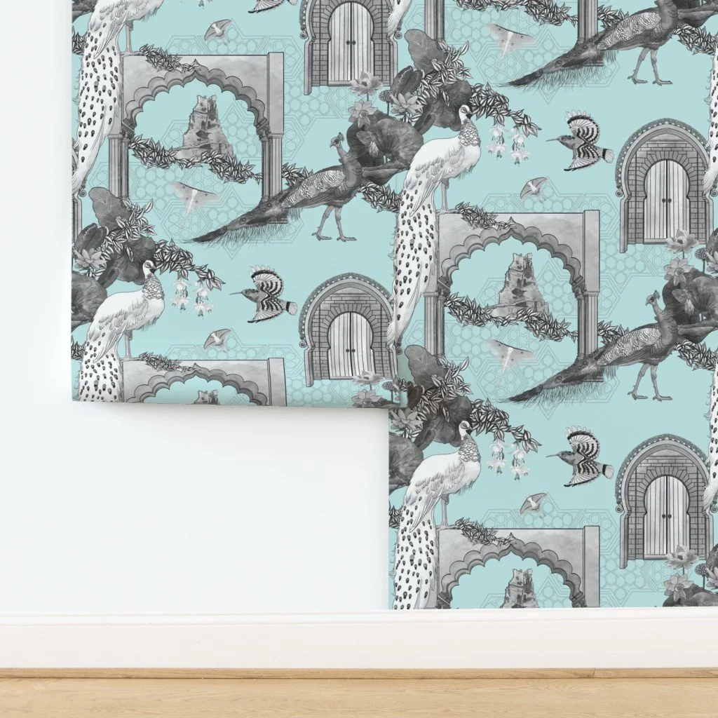 The Beauty of India - Life Among the Arches - Toile on Light Teal Wallpaper