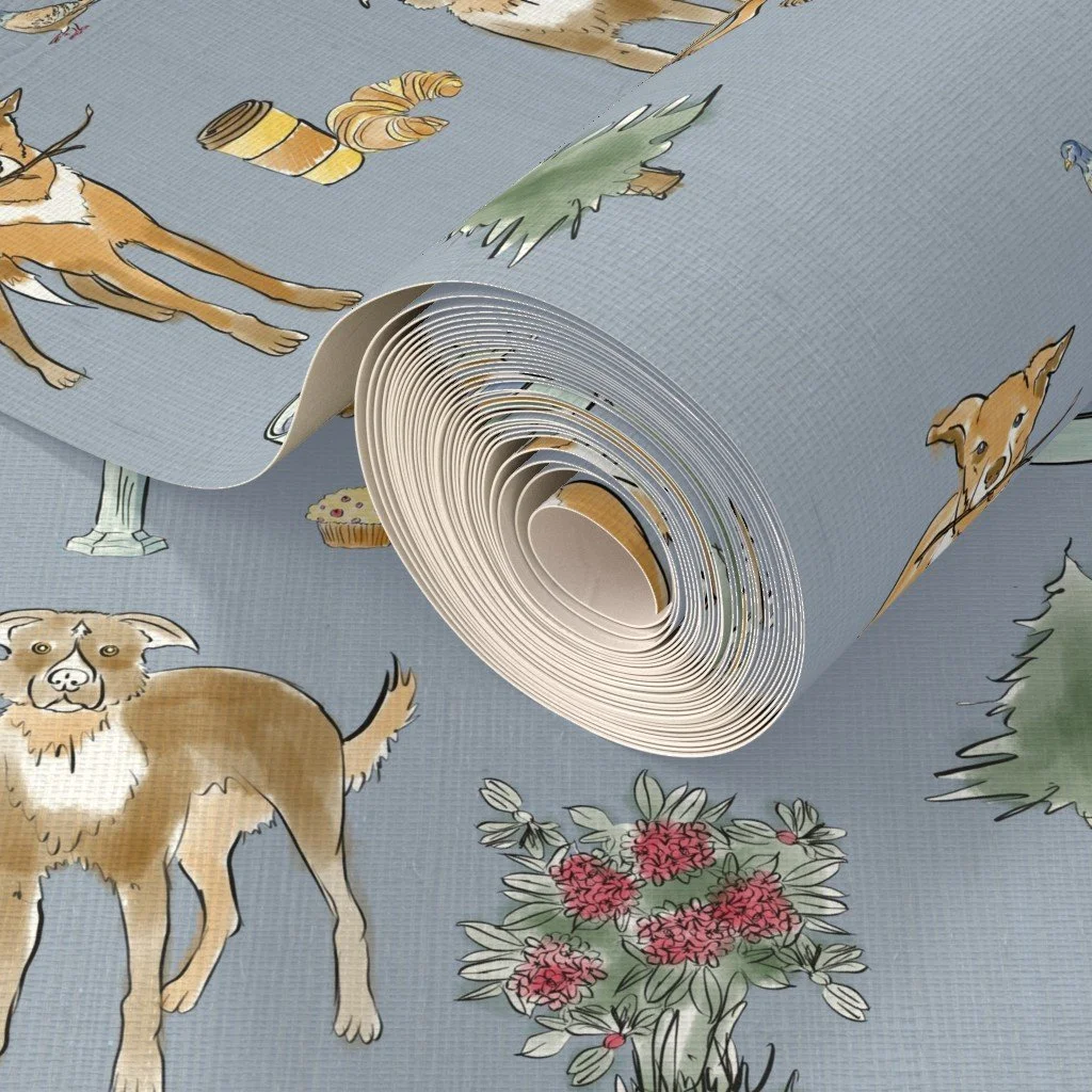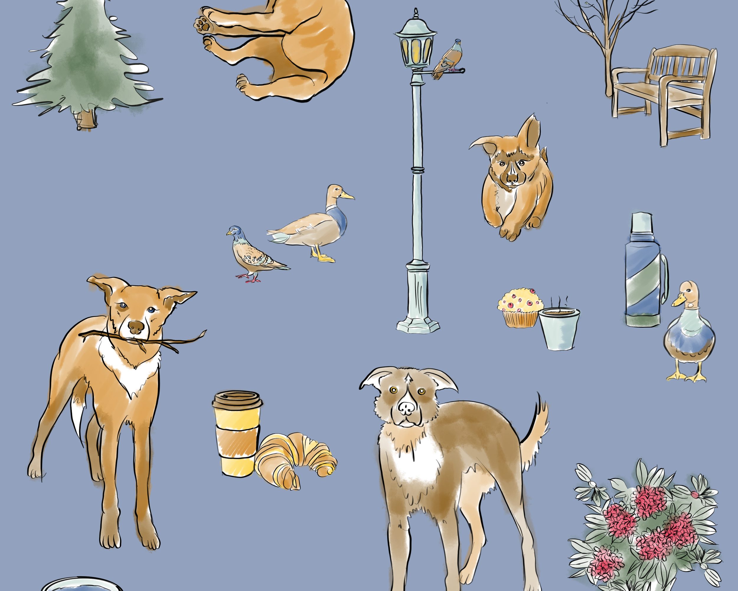 Coffee in the Park with Dogs Full-Color on Faded Denim