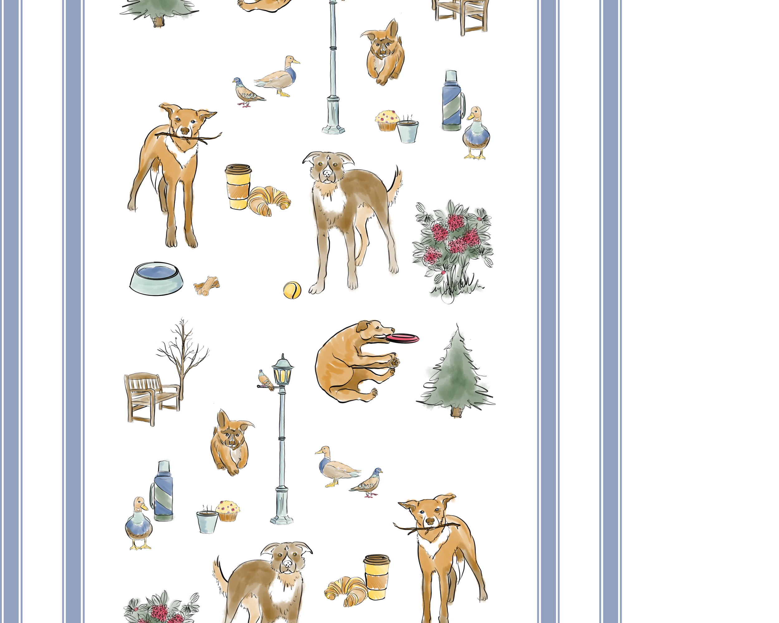 Coffee in the Park with Dogs Full-color Stripes+Faded Denim Stripes - White