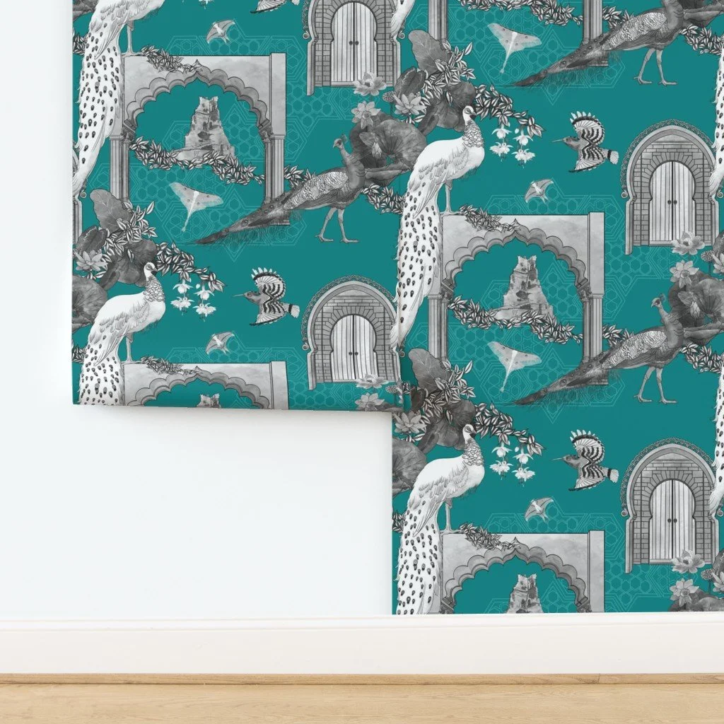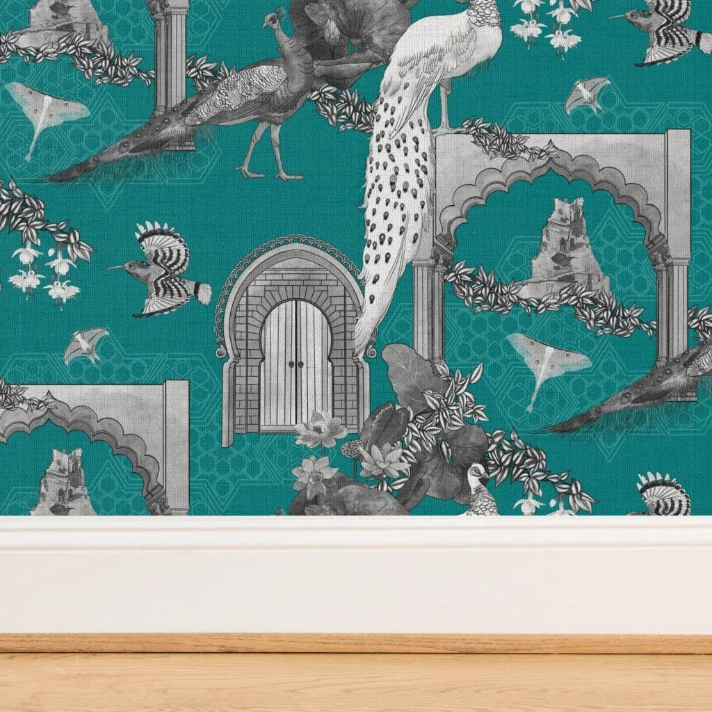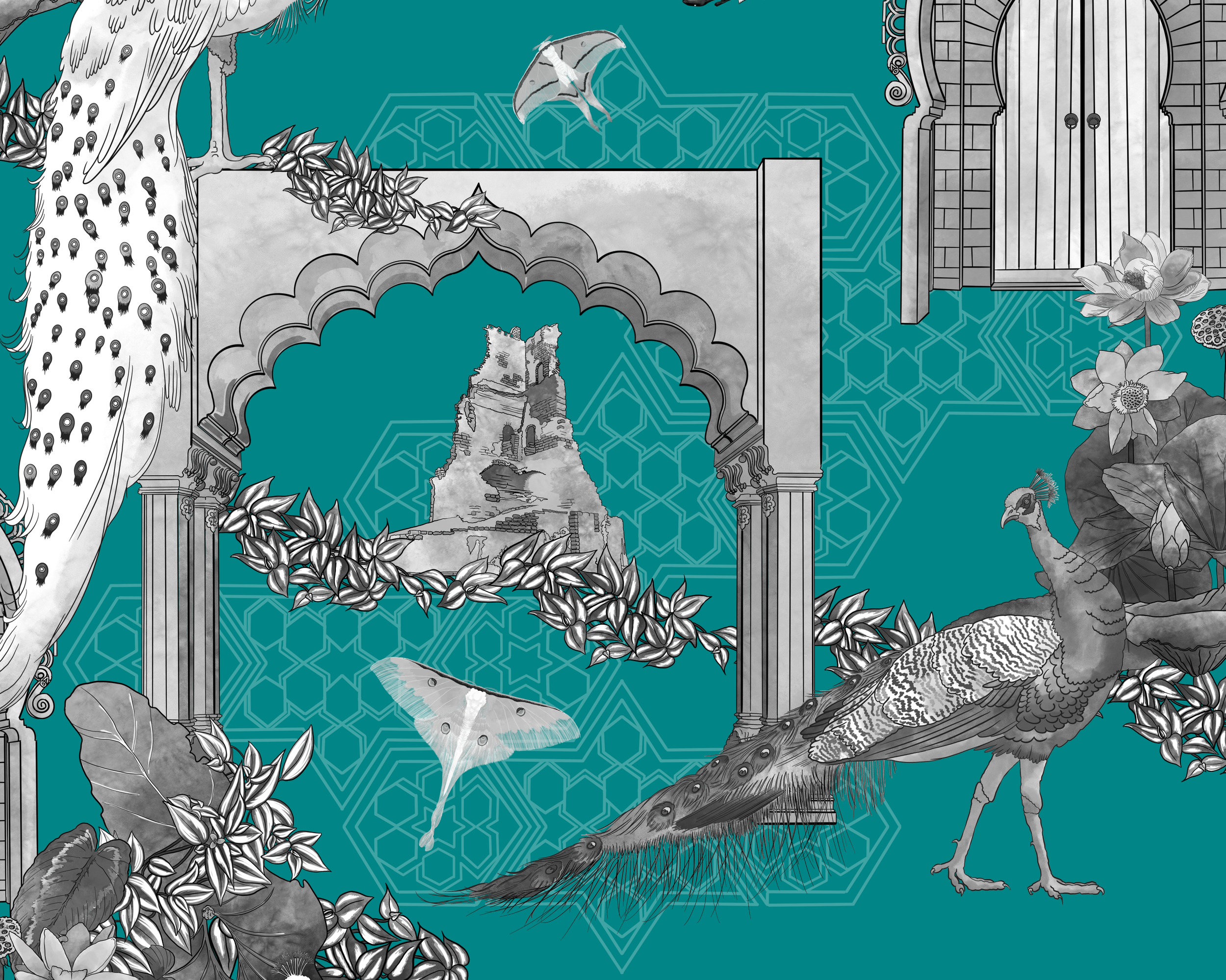 The Beauty of India - Life Among the Arches - Toile on Dark Teal Wallpaper