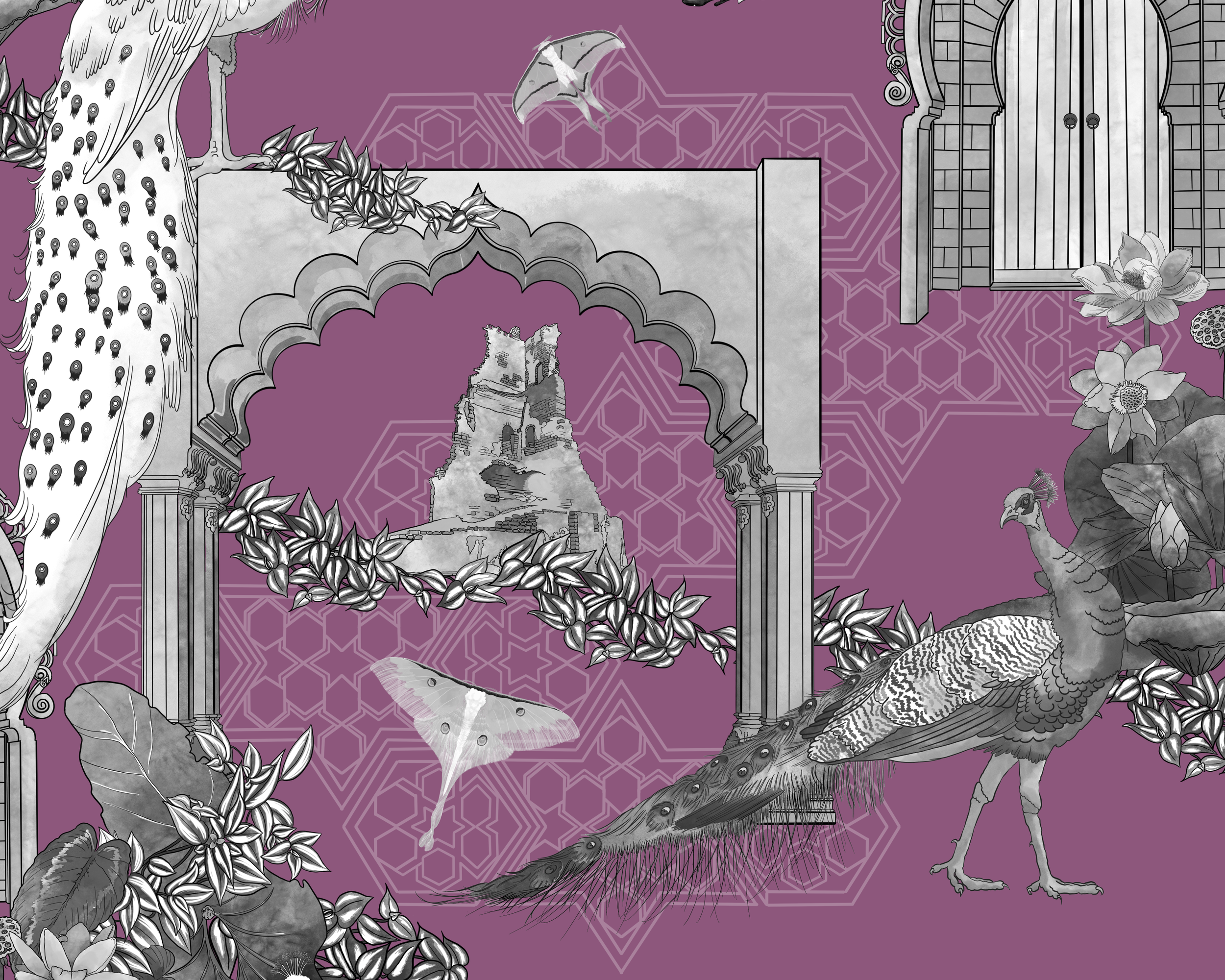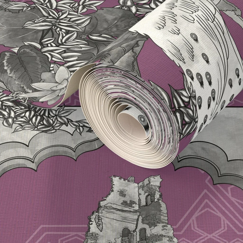 The Beauty of India - Life Among the Arches - Toile on Mauve Wallpaper